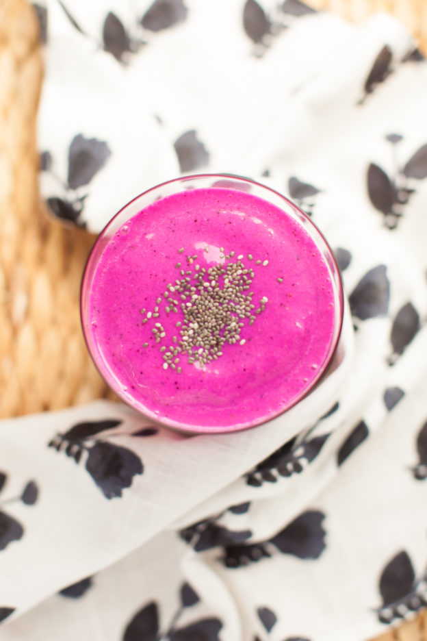 Here’s a pitaya smoothie to brighten any day! I love dragon fruit, it has such a unique depth of fruity flavor, a flavor you don’t get from nearly any other fruit. It’s bright and striking trademark color of pink can draw anyone in for a little taste! This is a simple & easy 5 ingredient smoothie recipe.